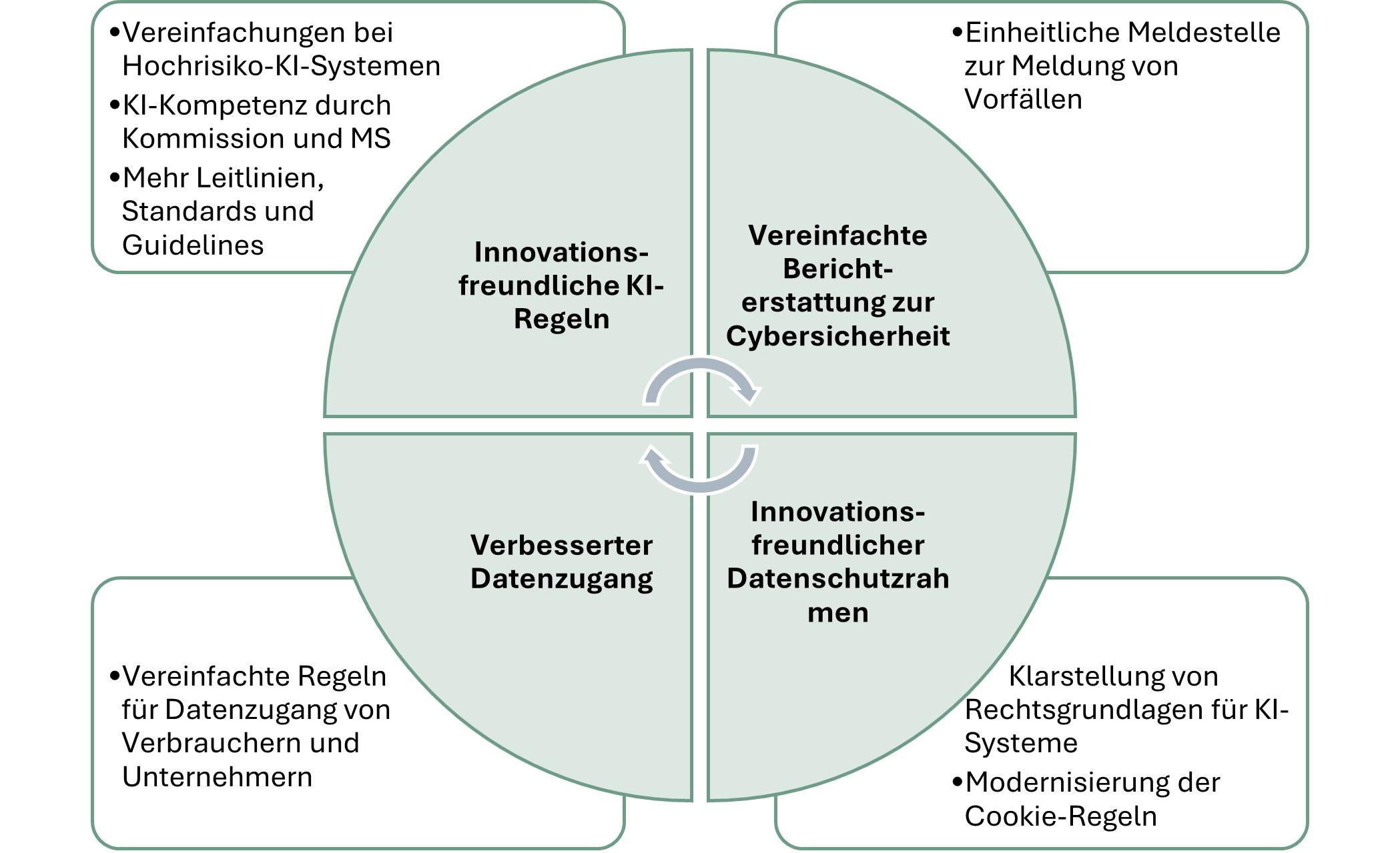 Mit dem Omnibus-Paket sollen die Vorschriften zu KI, Cybersicherheit und Daten gestrafft werden. Neben dem AI Act sollen etwa auch die DSGVO oder der Data Act überarbeitet werden. Das Omnibus-Packet umfasst folgende Eckpunkte: